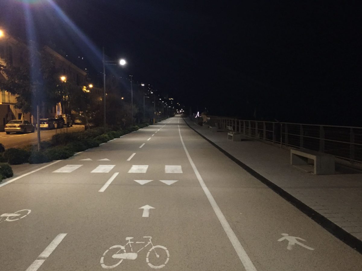 After the demolition, with the recovery and rejoining of the urban fabric and the relation city-seaside, the cycling-pedestrian track has been realized, with the typological and dimensional characteristics already used for other realized kilometers: cycling-walking track in pigmented asphalt, sidewalks, lush trees and surrounding green areas, the widespread presence of prestigious street furniture.