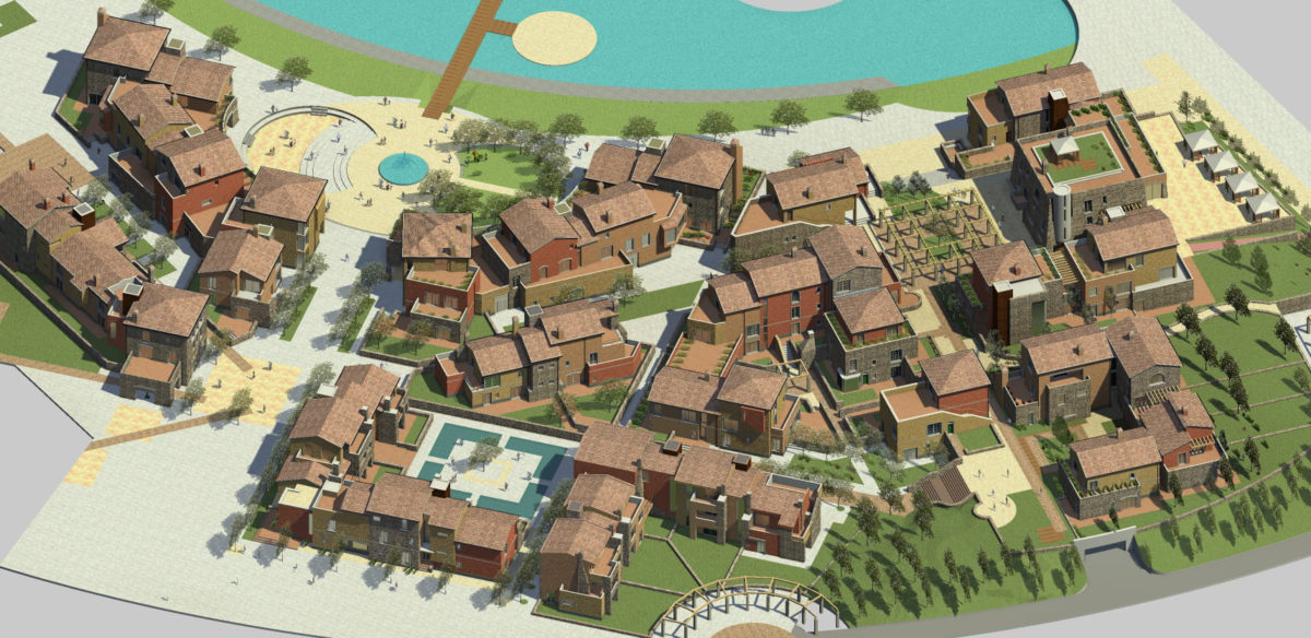 Similarly, the building typology of residential buildings, as well as that of the other functions provided (commercial buildings, common and leisure areas, a place of worship and car parks) evokes shapes and sizes of the historic Italian villages, although with modernist digressions to diversify and modernize the style.