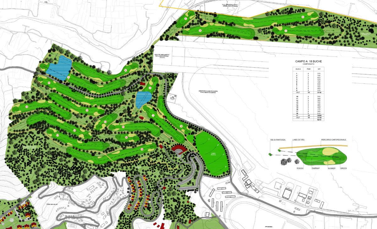 The project involves the construction of two golf courses, an 18-hole championship course and a 9 hole executive course, both equipped with Club House and the necessary services.