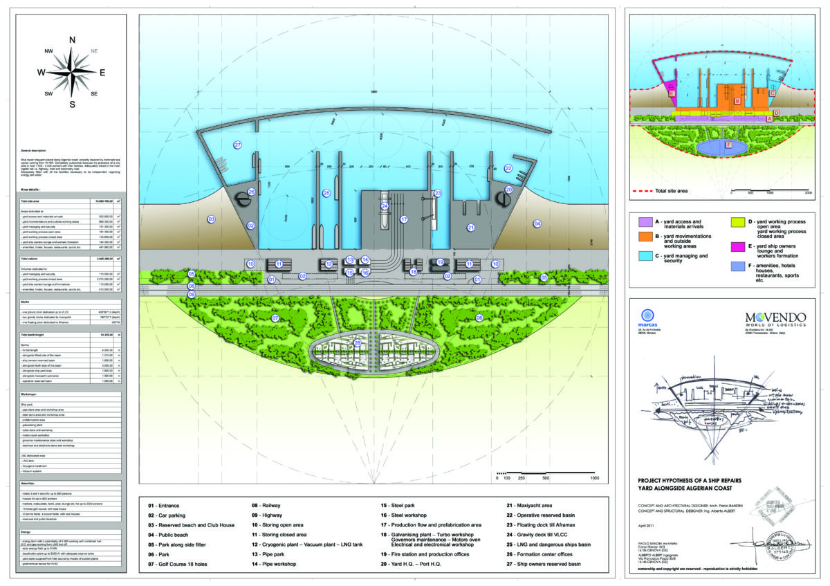 • Program : shipyard, marina, offices, apartments, golf