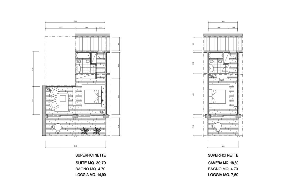 L’albergo prevede camere e suite, ristorante, sala colazione, lounge bar, roof garden, sala congressi e servizi, mentre il centro benessere prevede una piscina coperta che si estende anche all’esterno, sauna, bagno turco, sale per trattamenti, servizi.