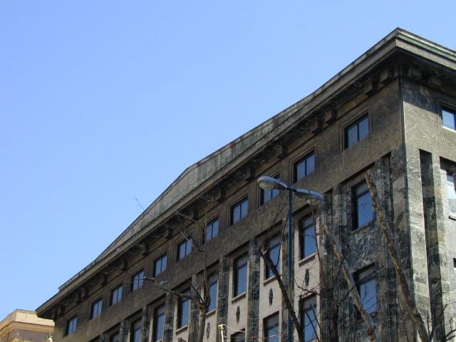 Le bâtiment, d’une très grande qualité architecturale à l’extérieur comme à l’intérieur, a été réalisé en 1929 sur projet de l’architecte Giuseppe Crosa di Vergagni et se caractérise par une puissante stéréotomie à bossage. Il se compose de sept étages surmontés d’un attique.