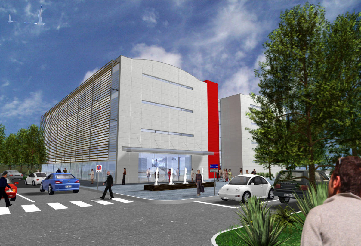 – Un centre de formation (5.500 m2), composé de deux blocs de quatre étages reliés entre eux par une galerie vitrée (accueil, bureaux, salles de cours et salles de conférences) ;