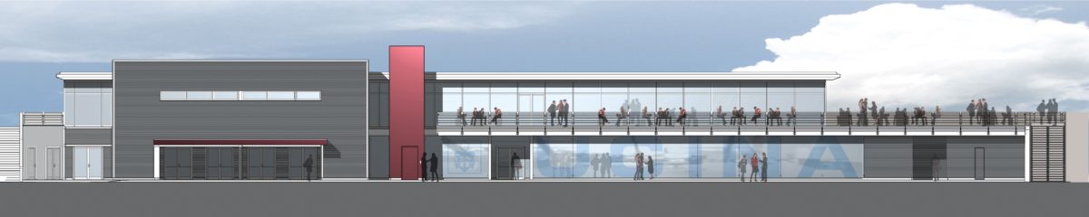 En suivant cet esprit le bâtiment est façonné avec des éléments fortement évoquant une embarcation : lignes horizontales filantes élancées vers la mer, un pont panoramique vue mer, exactement comme sur un bateau…